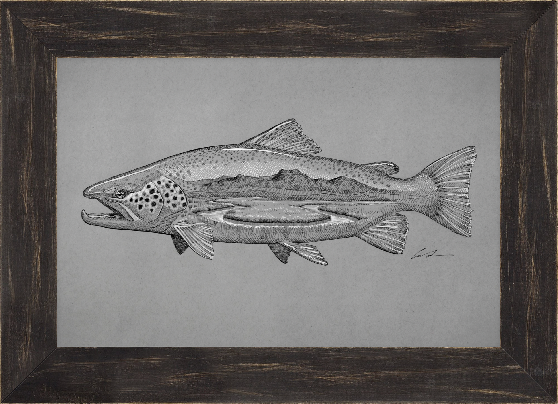 Garrison Doctor, co-founder and designer at RepYourWater is an artist at heart. This is a giclée reproduction of his "Spring Creek Brown" original pen and ink. Inspired by those old, smart brown trout that live under the banks of spring creeks and creeks from Chile, to Montana to Iceland and beyond...